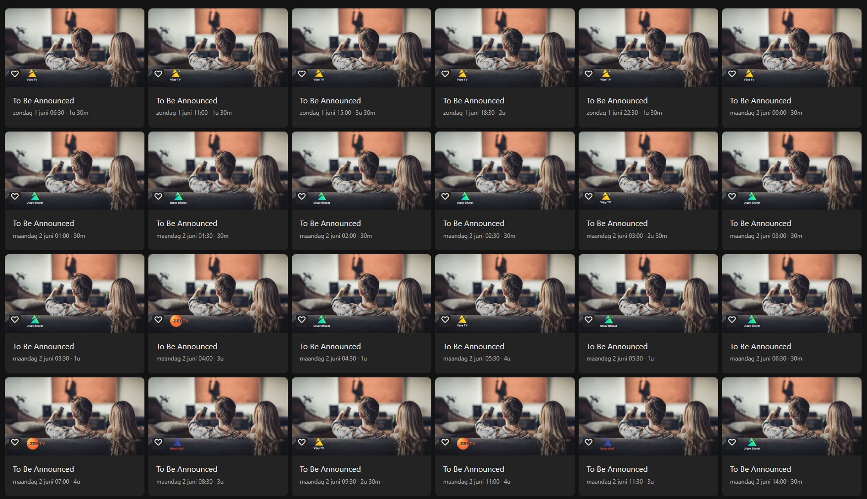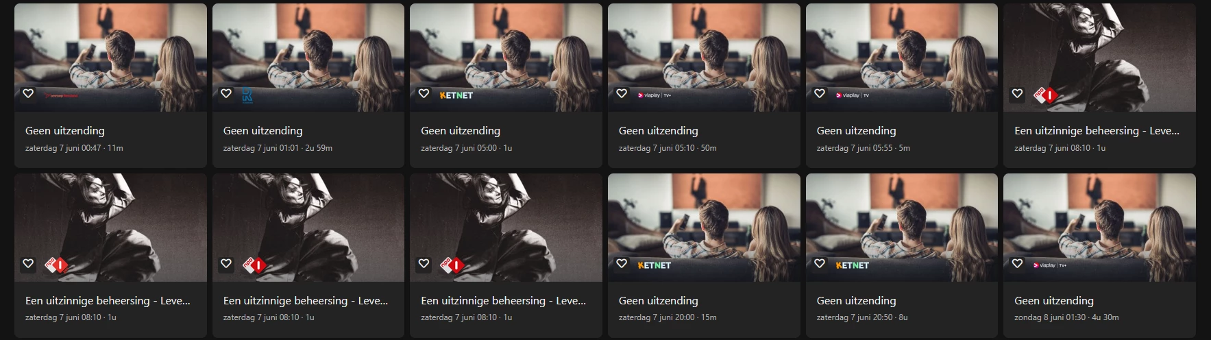 Iets wat ik eerder ook al had aangegeven, maar wellicht aan de aandacht ontschoten is zijn de ‘Geen uitzending’ blokken. Deze kunnen gewoon aangeleverd worden door de zender. In je voorbeeld gaat het over ‘Viaplay’ en daar is men momenteel zoekende naar een goede programmering, dus verschuivingen daarin zijn zeker aan de orde.