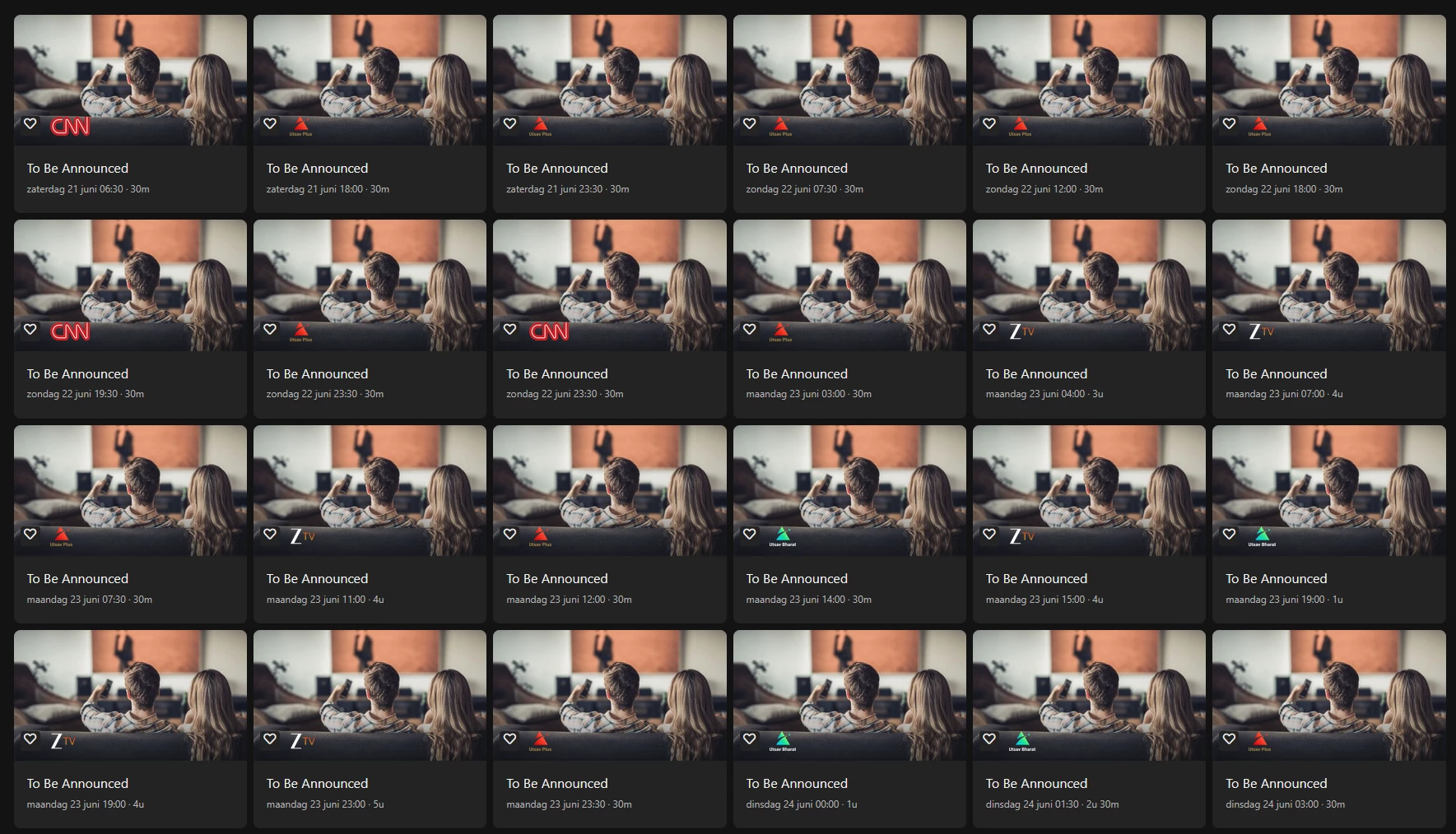 Ook de ‘Geen Uitzending’ items kunnen voorkomen in de programmering. Ook hier moeten we ervan uitgaan dat wat de zenders aanleveren correct is.