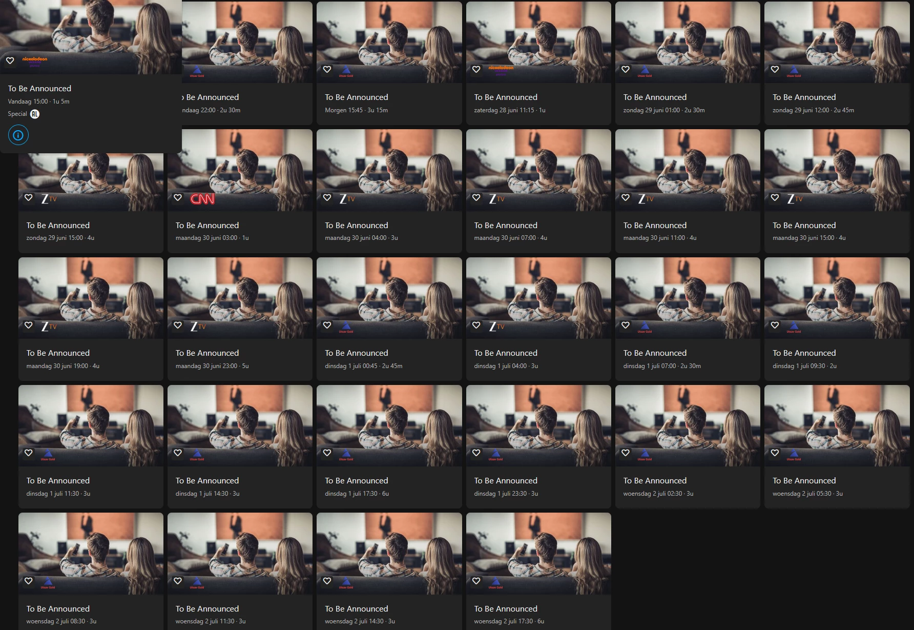 Dank voor je reacties ​@matthijs peters.  We hebben inmiddels meerdere keren toegelicht hoe het proces rondom de tv-gids werkt, welke beperkingen er zijn en op welke manier meldingen worden opgepakt. Ook een directe collega uit het tv-team heeft hier toelichting op gegeven en reageert hier op eigen titel.