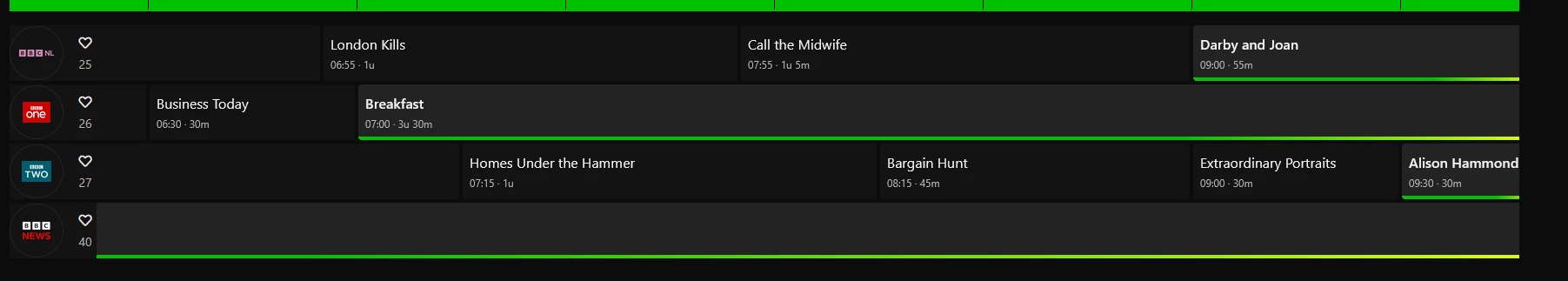 En bijna alles ging over de epg. Zeffs die over bbc nl+ want replay is aan de epg gekoppeld