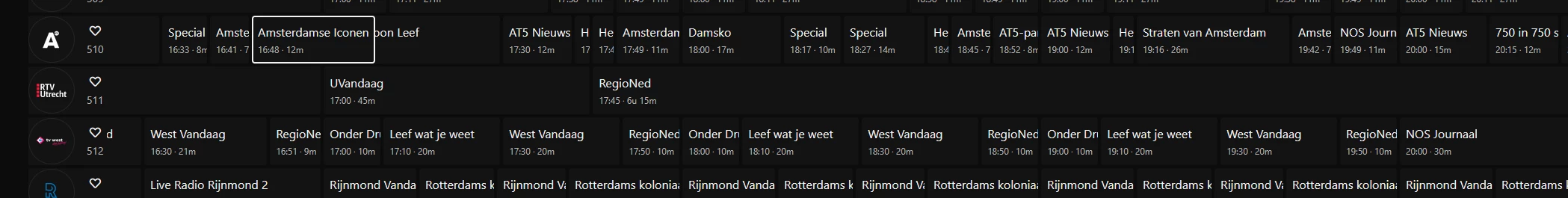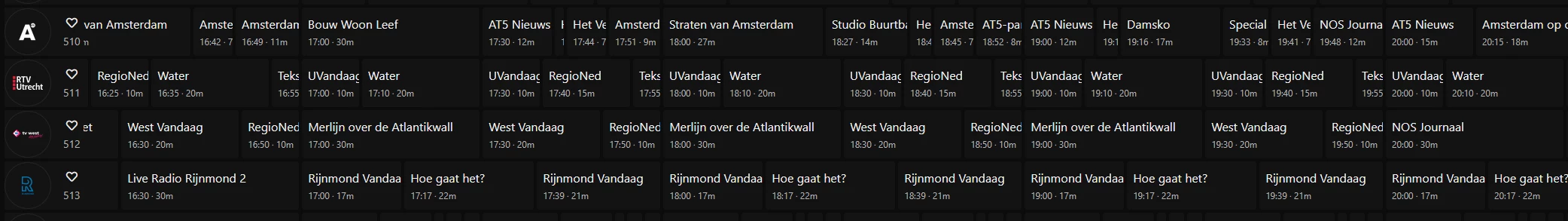 Twee programma's ontbreken in de epg bij 192tv, zaterdag 2 augustus om 16:00 uur De Nationale Zaterdagmiddag gebeurtenis en om 18:00 uur Jukebox.  Het programma Hits uit Zee dat om 14:00 uur begint, duurt niet tot 19:00 uur zoals er nu instaat.