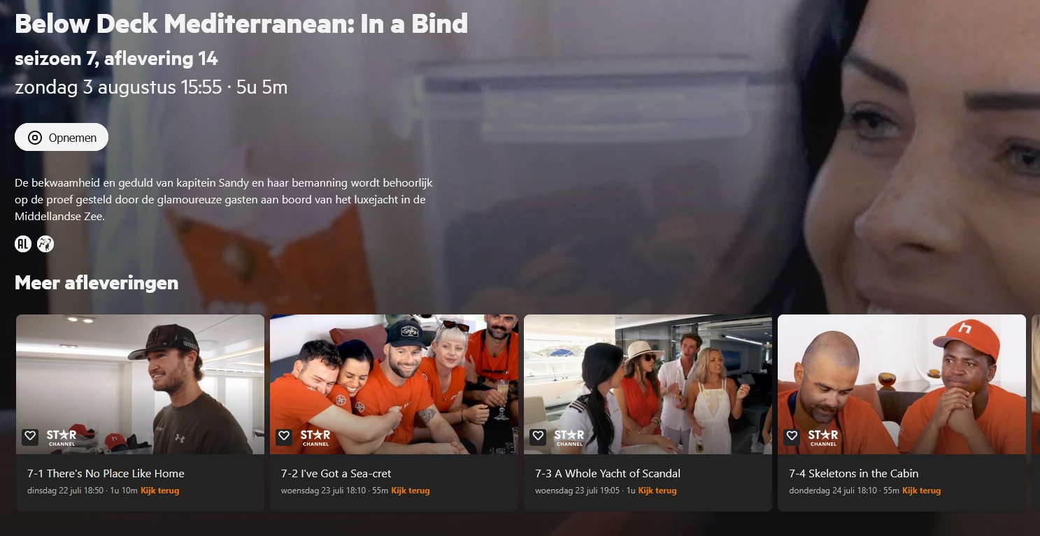 De aflevering is op 30 juli om 20:30. Voor de zekerheid neem ik deze maar op. Het viel mij op omdat ik bijna dagelijks door de gids moet om te kijken of er niet toevallig een seizoen niet is ingepland voor opname.