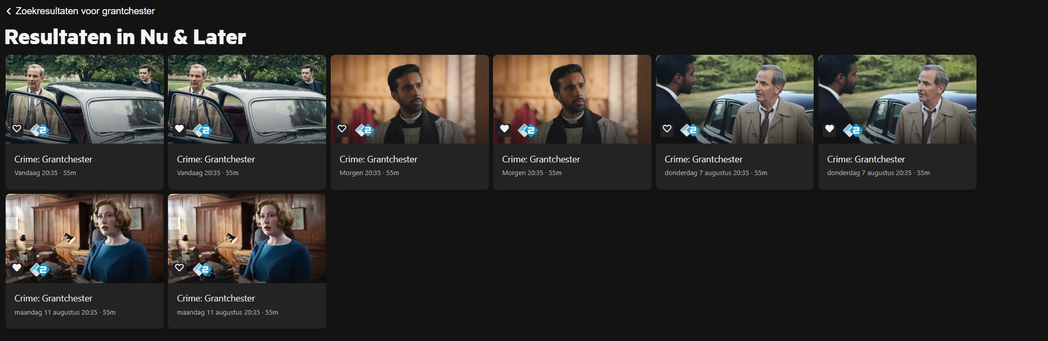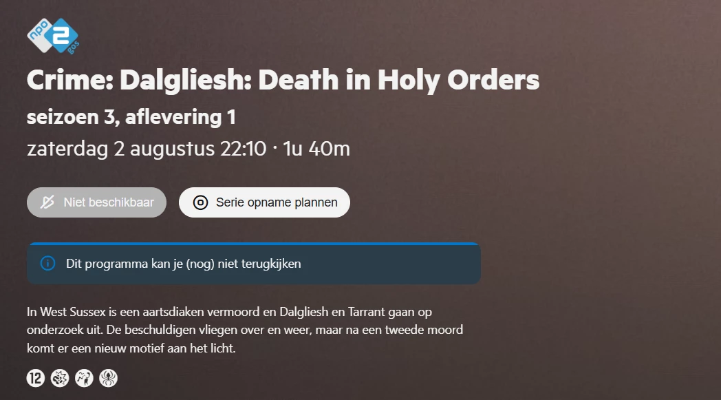 Bijvoorbeeld zaterdag 2 augustus 12:20, dit zou Meer, Marry, Murder moeten zijn, maar is Cold Case files.