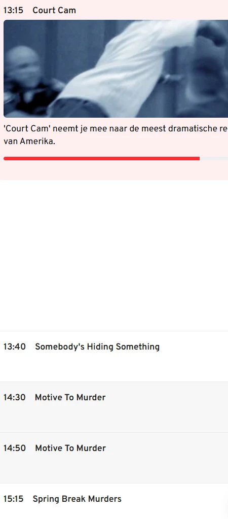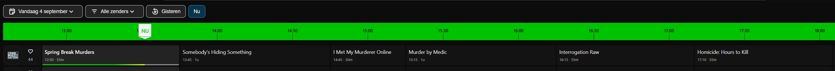 De programmering voor Crime + Investigation klopt weer niet, zijn totaal andere programma's op dan dat de gids aangeeft.