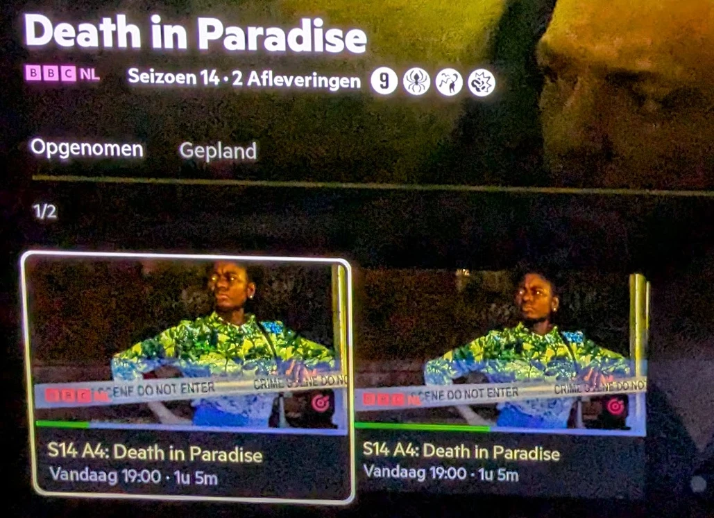 In de nacht van woensdag 3 op donderdag 4 september, om 02:05 uur op BBC NL, komt Van Der Valk, seizoen 1, aflevering 1, zoals dit ook in de gids staat. Maar als ik dit instel als opname, dan staat het bij geplande opnames als aflevering 9, en niet aflevering 1. Dus bij gepland staat het als aflevering 9, maar in de gids staat het als aflevering 1.