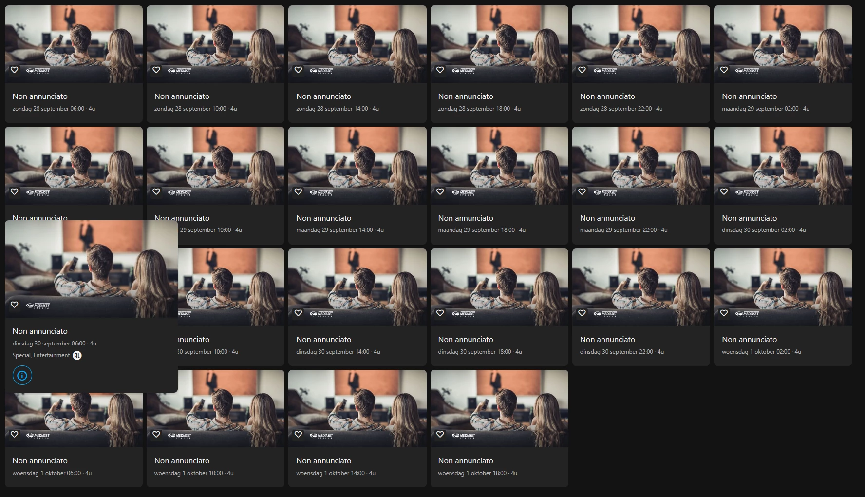 mediaset italia vanaf zondag 28 september 06:00 non annunciato oftwel word aangekondigd