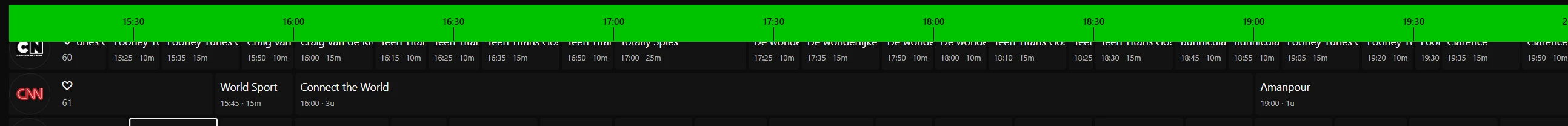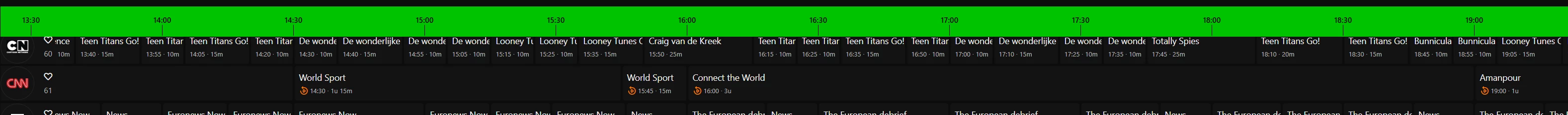 De programmering van CNN hebben we nog steeds onder een loep liggen en zijn in gesprek met de gidsleverancier om hier een oplossing voor te verzinnen. Dat heeft nog wat tijd nodig helaas, maar we zijn er wel druk mee bezig.