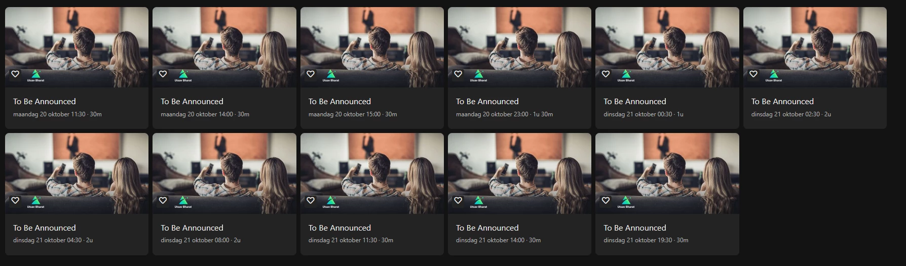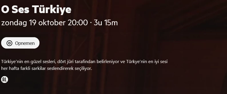 ook word uitzending van 12 oktober niet getoond want het word niet als serie gezien