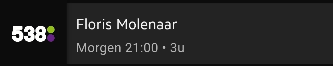 Het vreemde is dat TV538 zelf ook Floris op 15:00 zet en Martijn om 21:00. Zie https://www.538.nl/programmering?day=5