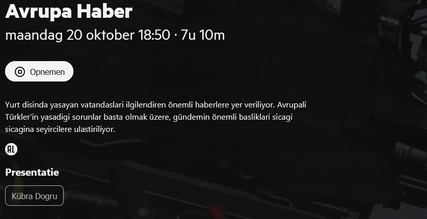 Het is toch het beste dat je hier een eigen topic voor aanmaakt ​@nebregg. Het is namelijk geen algemeen probleem en lijkt zich alleen op jullie account af te spelen. Kun je dan in je eigen topic melden welke tv-ontvanger er gebruikt wordt en wat je ziet als je gaat naar KPN TV: Opgeslagen? Dan kunnen we daar even meedenken naar een oplossing.