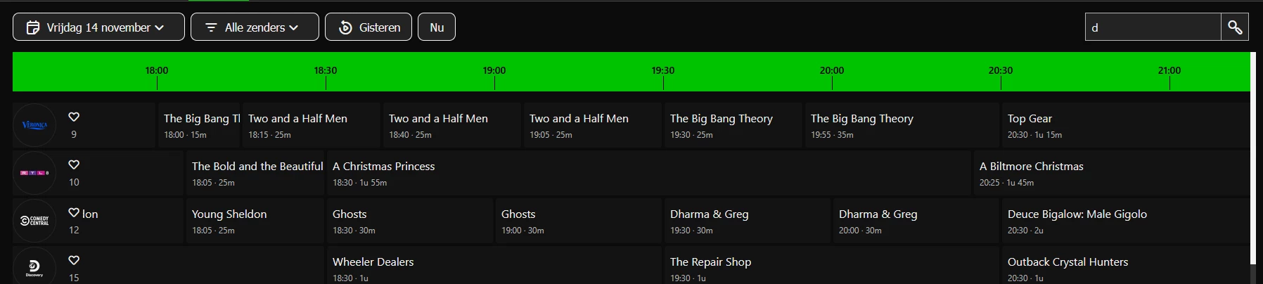 bij zender zoekveld d ingetikt en wat staat bovenaan