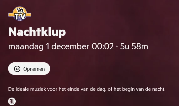 Voor de NPO Radio 5 Evergreen loopt een ticket en ook voor Nachtklup van 192 TV.