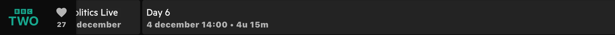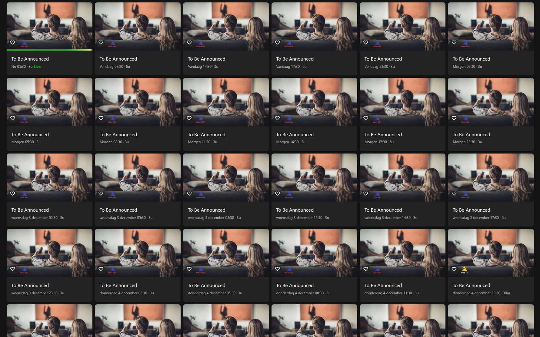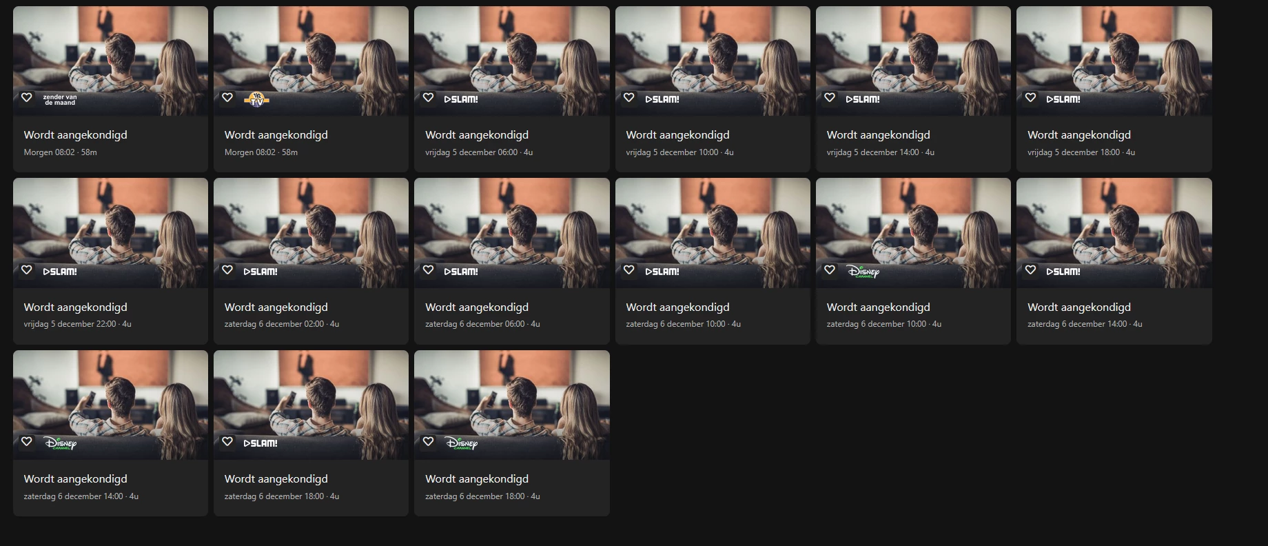 Ik zag ook dat op 5, 8 en 12 december er uberhaupt geen (nieuwe) data is aangeleverd (seizoen en afleveringsnummer). Dit is ook onder de aandacht en wordt aan gewerkt. Dank voor het doorgeven.