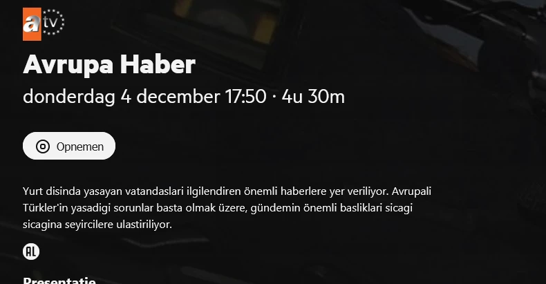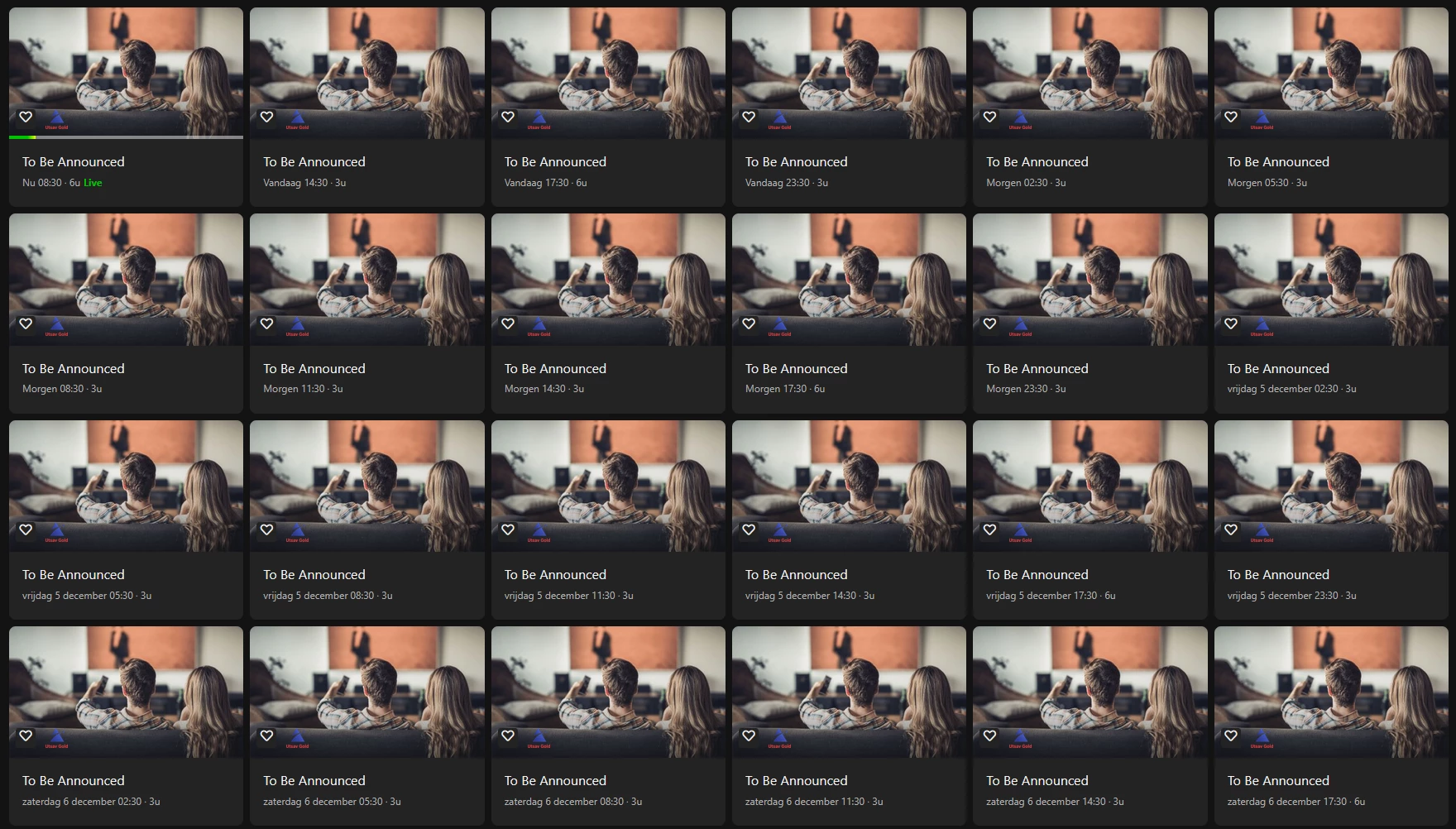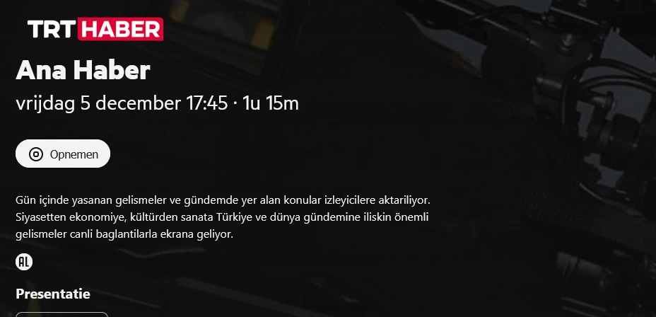 • Wat zijn de datum en tijd van de uitzending? Vanaf vandaag en daarna elke dag opnieuw