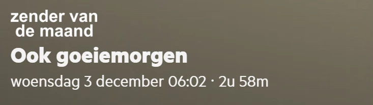 Dat is vreemd, ik zie bij maandag 8 december geen seizoen en aflevering nummer, bij de uitzending om 19:05 uur. Verschilt dat dus per kijker ?
