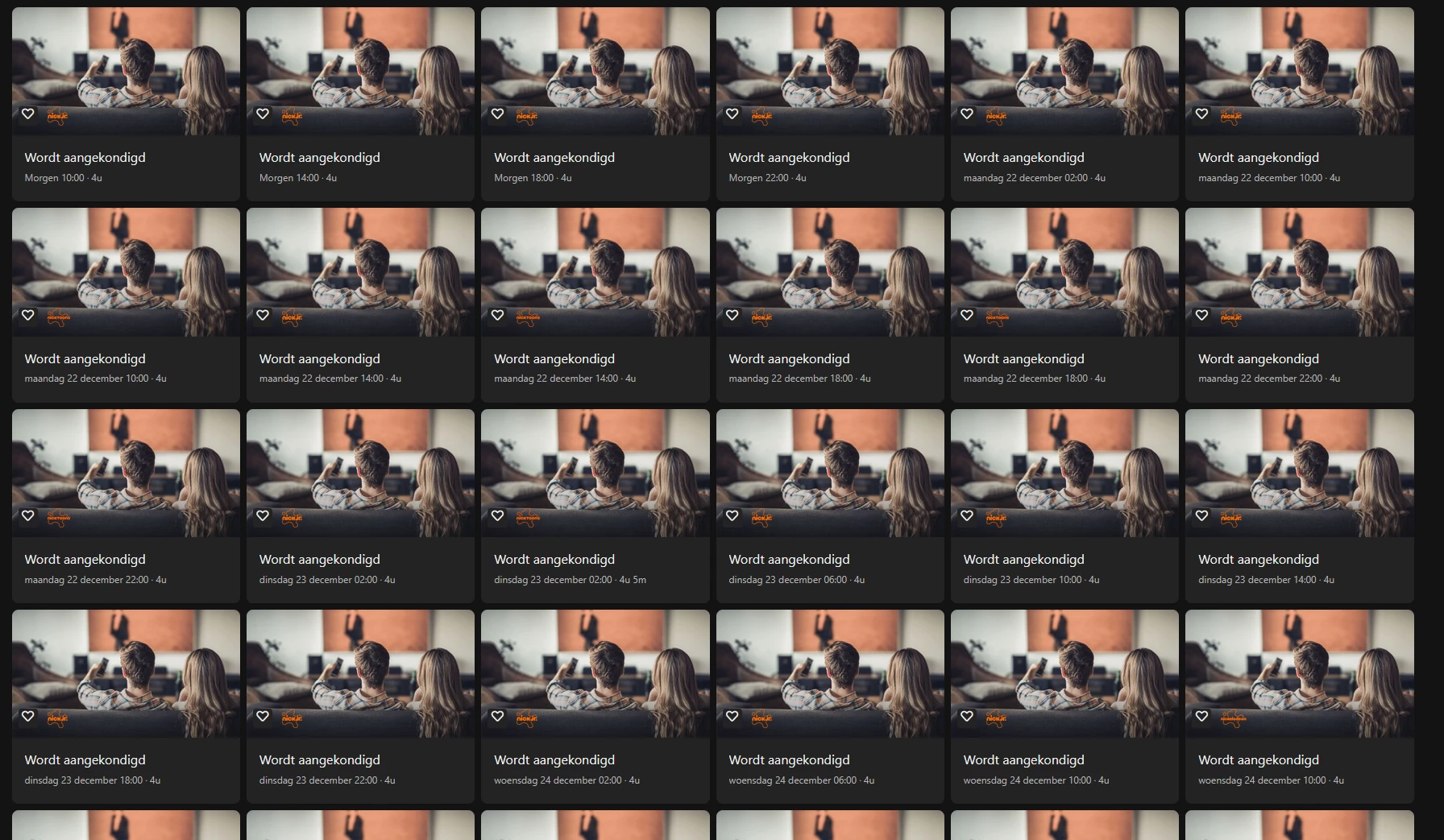 Nick Jr. heeft al een update gehad zie ik, is weer hersteld. Na een check zie ik ook dat dit is gebeurd voor ‘Harry Wild’ en NH Nieuws. Voor het kanaal Nickelodeon zijn we nog bezig de ‘Wordt aangekondigd’ weg te werken.