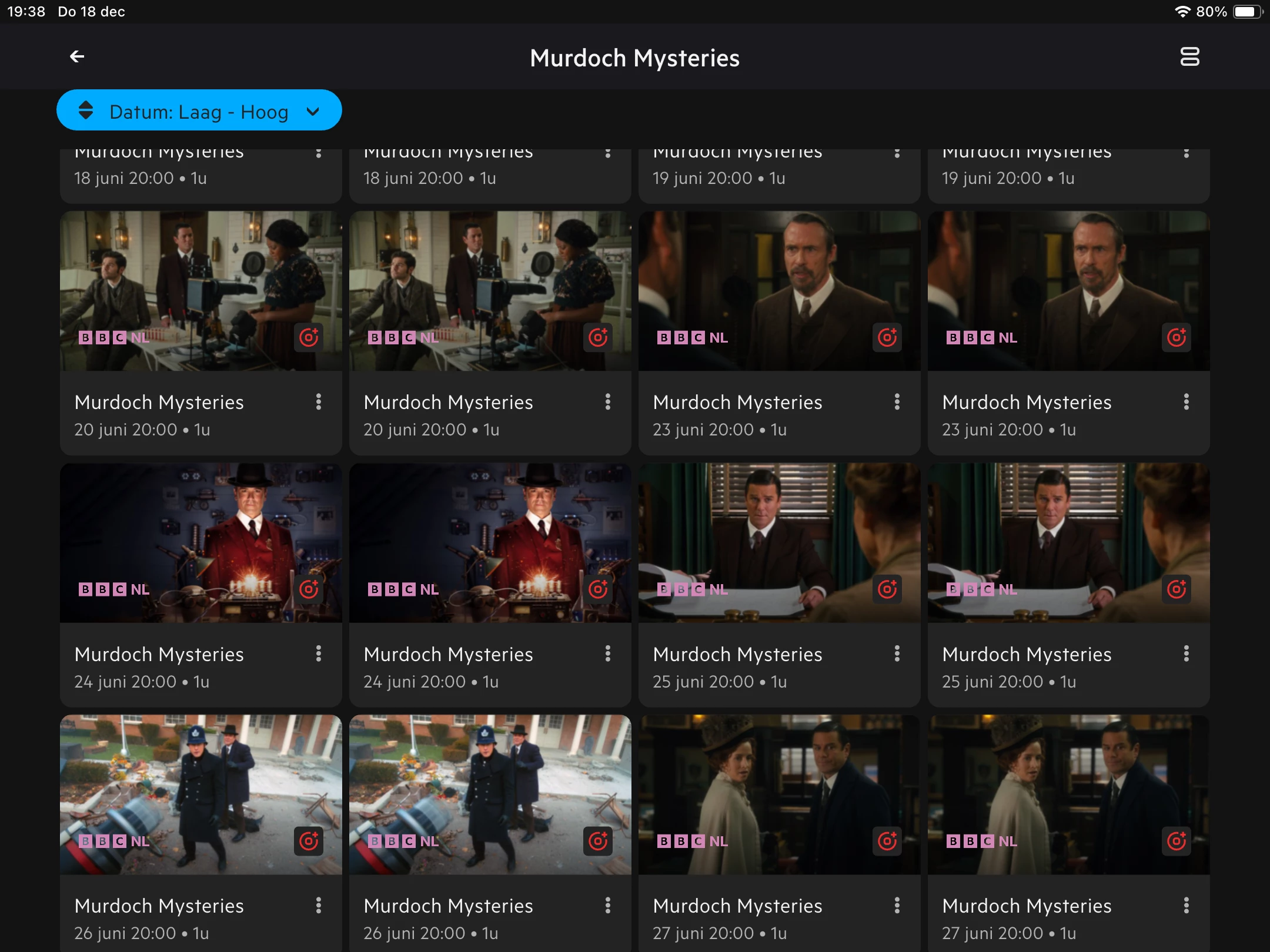 Ook ik heb nu last van dubbele opname’s; alleen in de apps diverse seizoensafleveringen van Murdoch - op DIW7200 zijn alleen enkele opnames te zien;