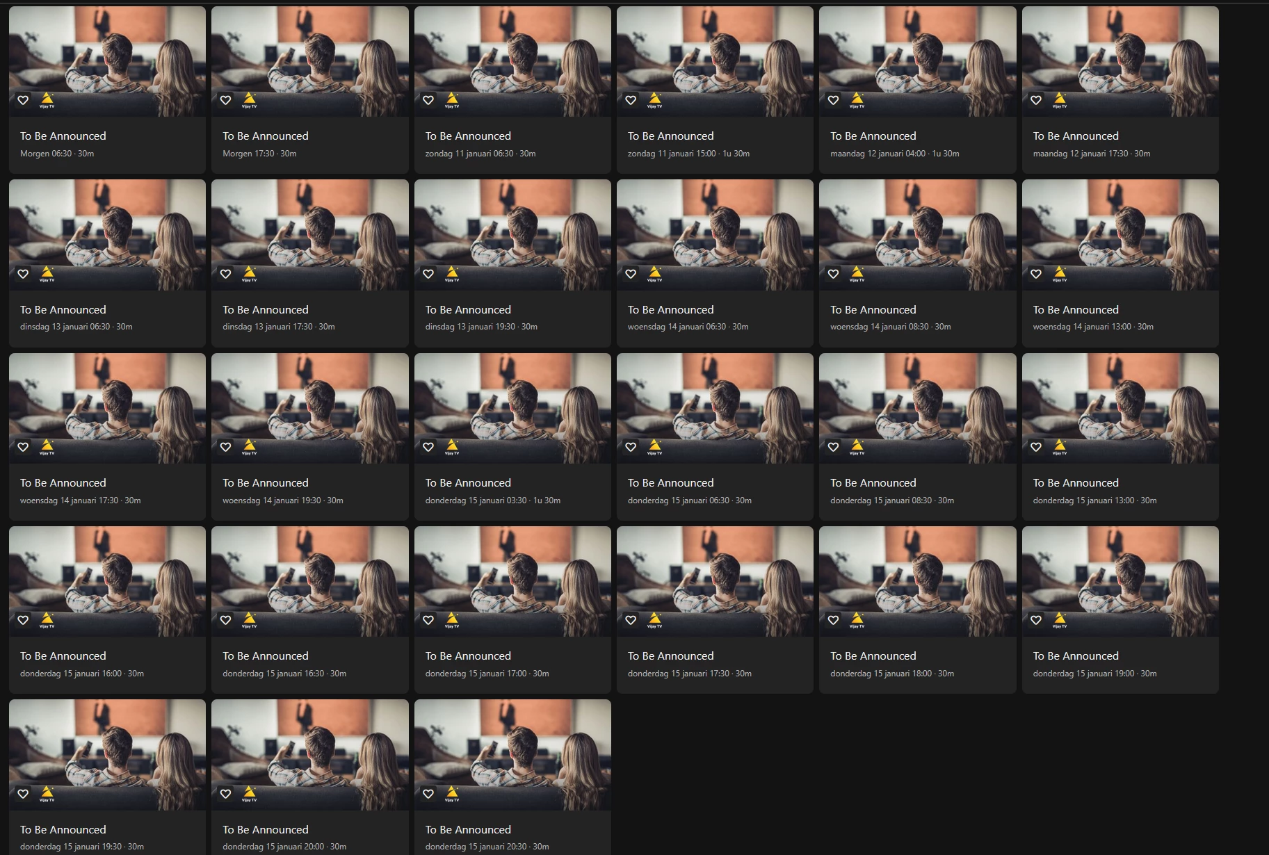 En Peter geeft hierboven een hele goed tip, zodat je alle afleveringen op elk gewenst moment kan kijken.