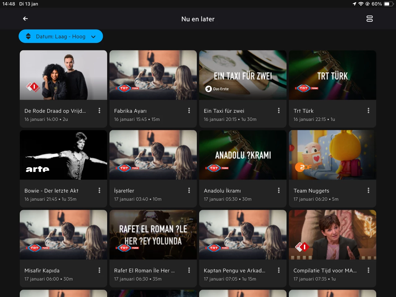 Dit heb ik nog even nagevraagd en dit kwam waarschijnlijk door een extra EPG update op 16 december wat iets anders moest oplossen. Kunnen jij ​@matthijs peters en ​@Hermanqwerty eens controleren of de opnames na 1 januari niet meer dubbel zijn (onder ‘Opgenomen’)? En zien jullie nog steeds dubbele opnames staan onder ‘Gepland’ als je nu nieuwe opnames inplant?