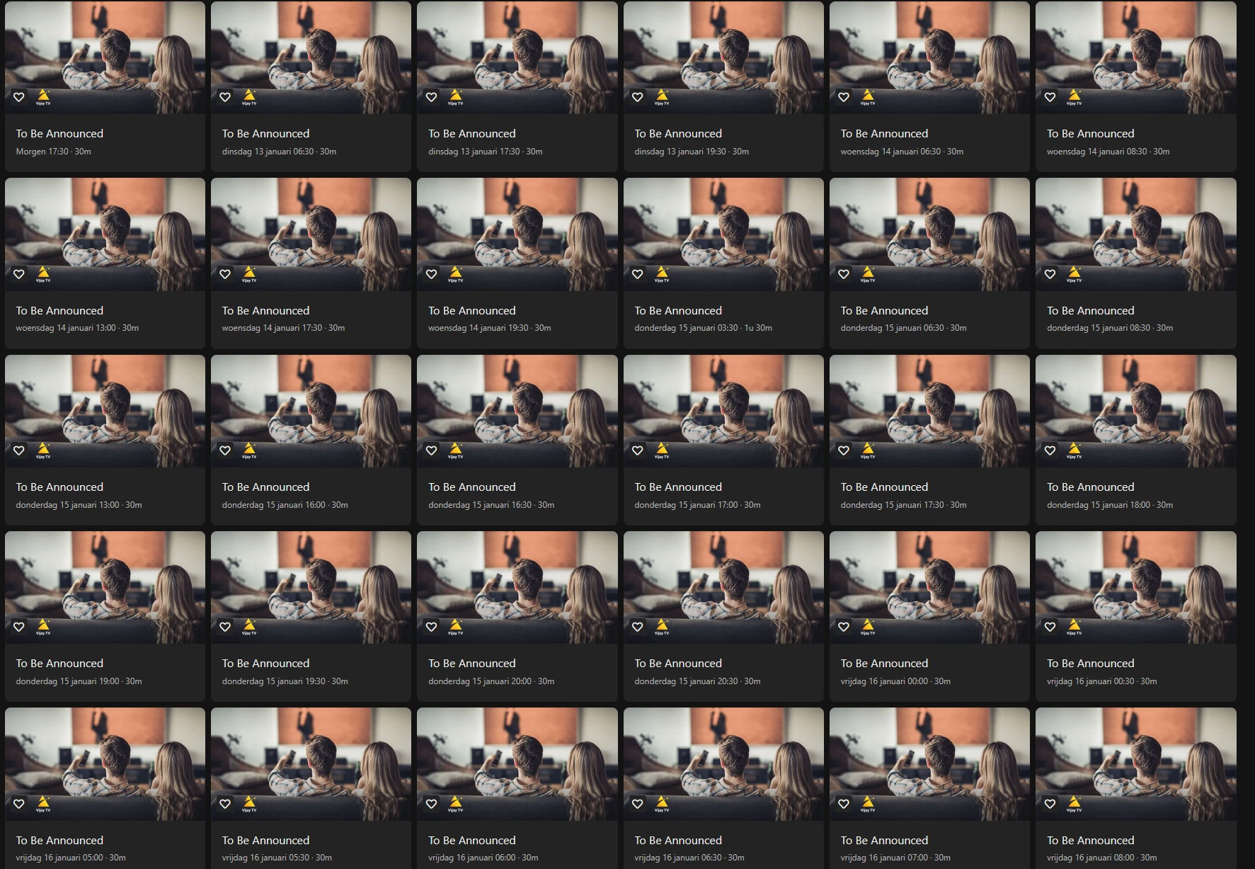 En het klopt dat Vijay TV een aandachtspunt blijft en daar zijn we ook wel mee bezig. Alleen is het niet zo makkelijk om de EPG voor die zender steeds op orde te hebben. Je hoeft het in ieder geval niet meer te noemen in nieuwe berichten ​@matthijs peters. Dat heeft geen toegevoegde waarde.