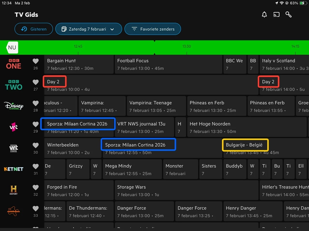 BBC ONE & TWO - Olympische Winterspelen staan in gids als Day 2, Day 3 vanaf za 7 feb. Blijkbaar lukt het nog steeds niet om sportuitzendingen van een duidelijke titel te voorzien in de epg.