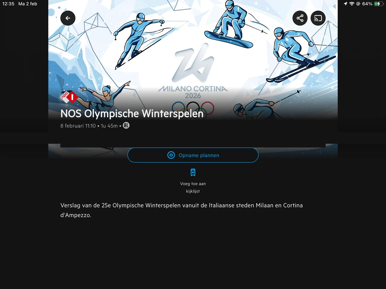 NOS Olympische Winterspelen - vanaf za 7 feb - lijken allemaal losse afleveringen. Waarom is dit geen serie? Voorbeeld: