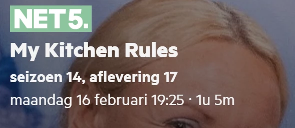 ‘My Kitchen Rules’ heb ik vorige week donderdag nog een keer onder de aandacht gebracht en daar zijn ook weer vervolgvragen op gesteld en acties op uitgezet. Het gaat nog steeds mis voor komende donderdag inderdaad en voor vandaag lijkt de starttijd niet te kloppen (dank ​@Eef87). Of voor vandaag de gids nog aan te passen is betwijfel ik, dus het beste kun je wel het programma wat start om 17:25 ook opnemen. Navraag staat uit wat de status is betreffende de nummering.