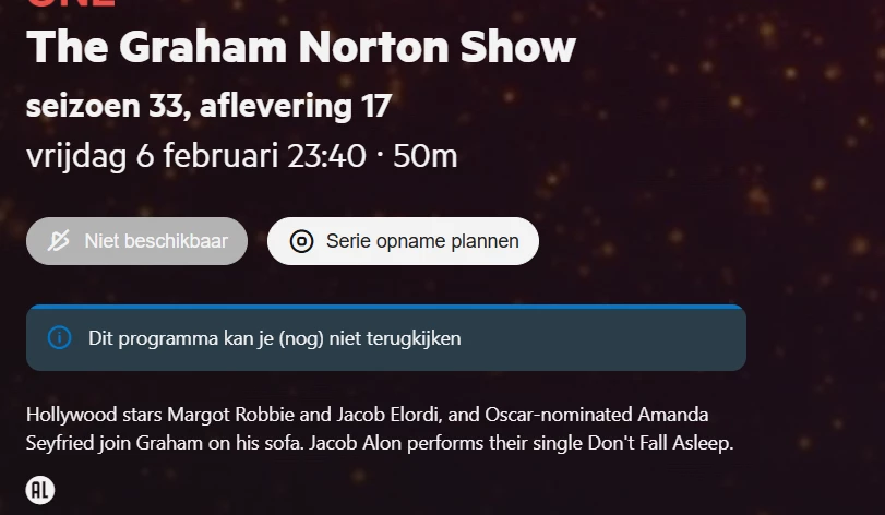 Ik kan het niet eens terugkijken; afgelopen dinsdag en gisteren woensdag; (zijn dus niet opgenomen, omdat het op een ander tijdstip stond of omdat jullie iets gewijzigd hebben?) , ik krijg van dinsdag 10-02-26 de fout; (STB zap 01Video niet gevonden).