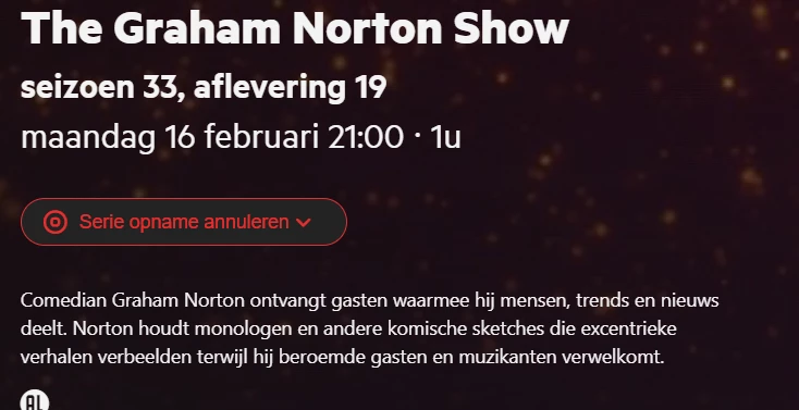 Ps Bij ​@matthijs peters wordt deze serie dus ook niet meer opgenomen> lees ik nu net, dus ik heb geen hoop of vertrouwen meer, dat het vanaf vandaag weer opgenomen wordt (ik hàd het gecheckt en het stond op "opnemen" afgelopen dagen 😡) en dat ligt niet aan mij, herhaal ik!