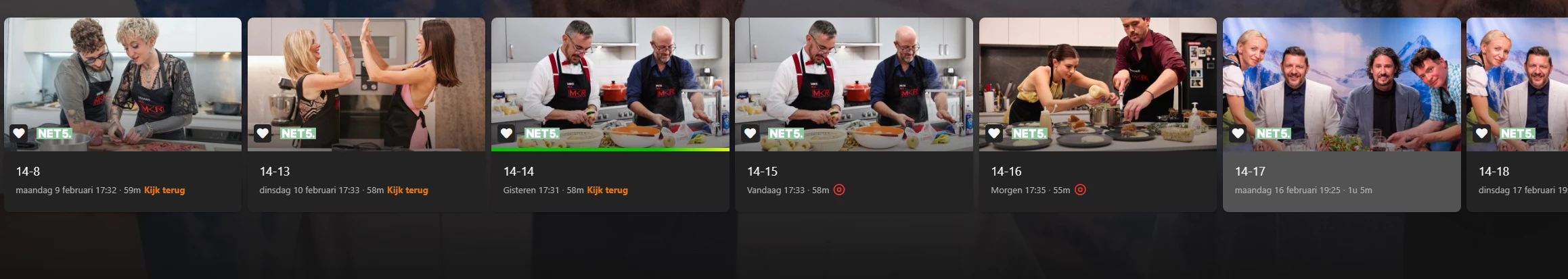 @matthijs peters Denk dat je het kunt vergeten met MKR> er wordt  uitleg over vandaag gegeven> aan de vragen over morgen, tijdstip waar je naar gevraagd word wordt ook niet gegeven, aflevering 16 is verdwenen bij MORGEN (en staat op verkeerd tijdstip} terwijl dat volgens mij wel goed was, ik heb de serie geannuleerd> ze werken volgens mij vanaf de andere kant van de wereld, als ze nu al kunnen voorspellen dat de uitzending van zometeen 17.32 uur mislukt 😵‍💫😵‍💫😵‍💫.
