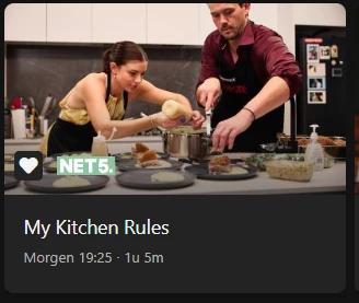 ook tvgids.nl  meld 19:30 voor my kitchen rules voor volgende week maandag
