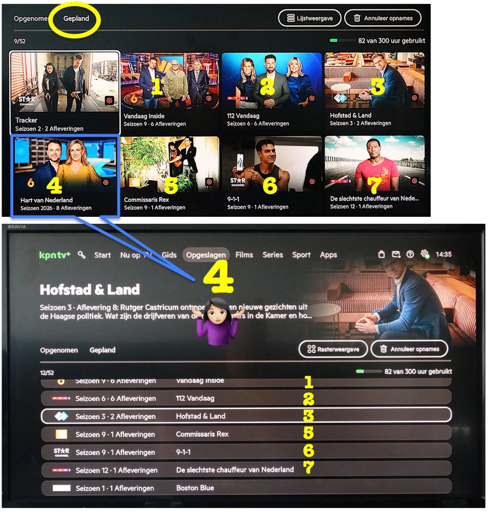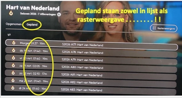 *Ff off topic ter aanvulling wat er ook niet goed gaat , de geplande afleveringen van HvN worden wel aangegeven in ,,GEPLAND’’ in de RASTERWEERGAVE maar NIET in de LIJSTWEERGAVE !