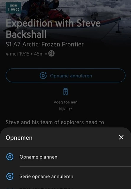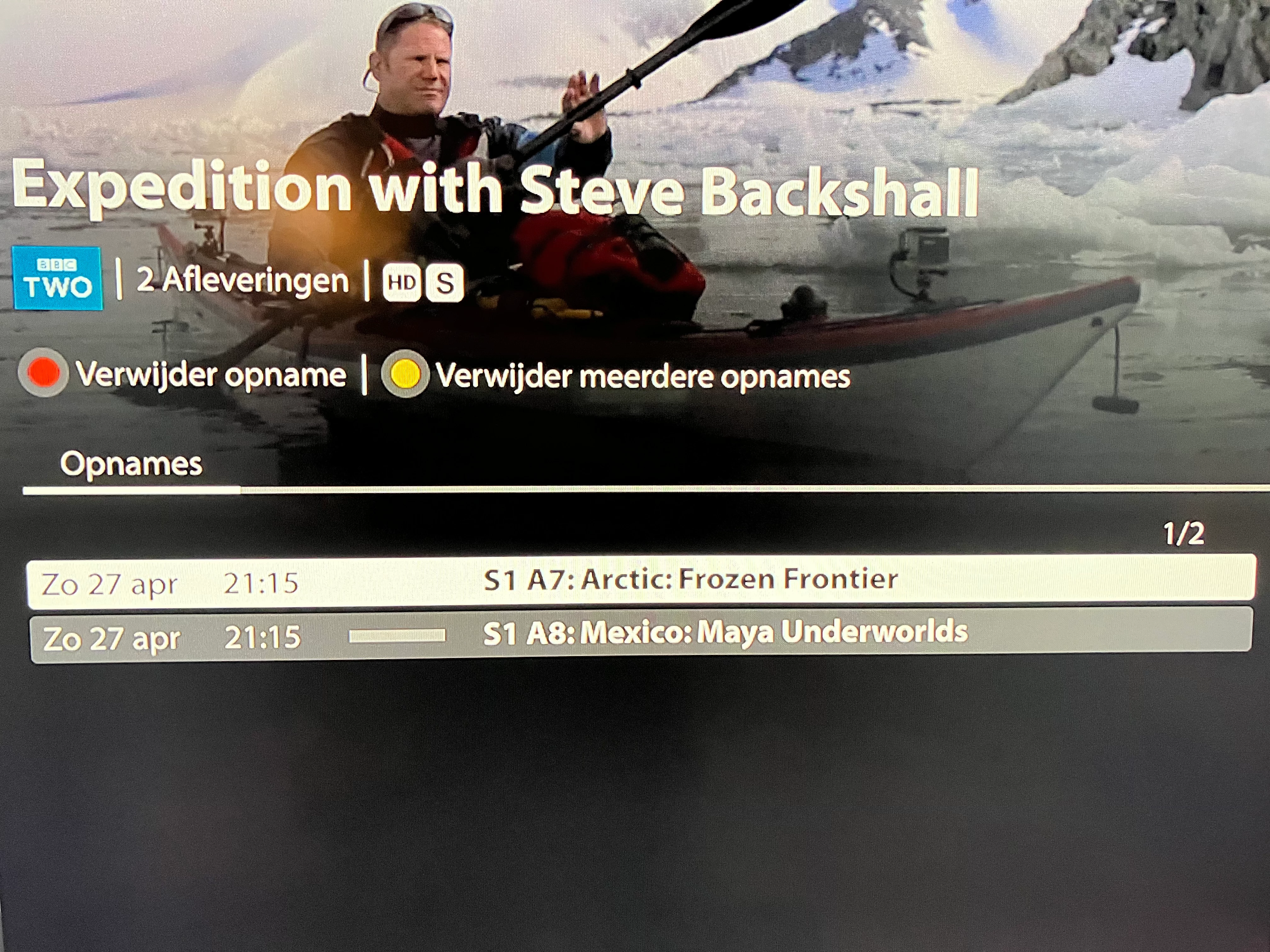Dubbele (serie) opname van Expedition with Steve Backshall BBC Two vanavond (zo 27 apr) 21:15, 2 afl opgenomen op dezelfde tijd.