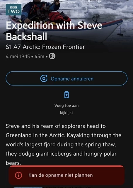 S1 A7 staat nu in de epg voor komende zondag, maar wordt nu niet meer automatisch als serie afl opgenomen (want al afgelopen zondag “opgenomen”). Inplannen als losse afl lukt ook niet: