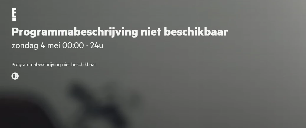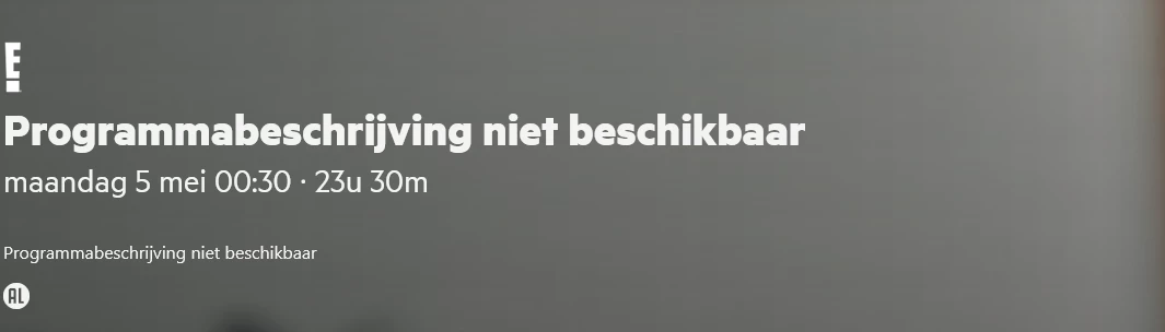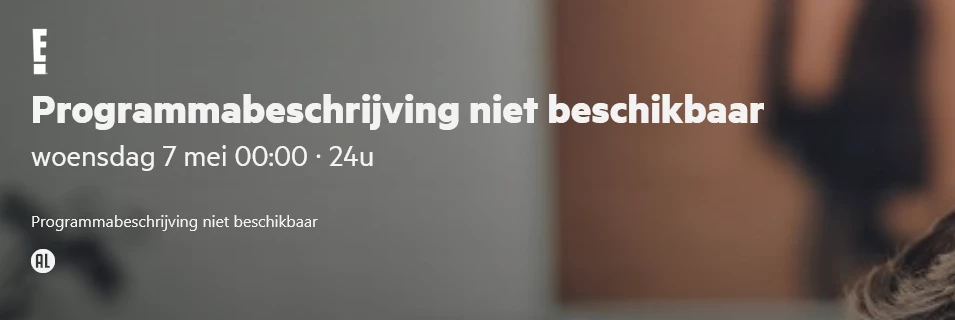 • E! Entertainment is bijgewerkt tot en met 4 mei. Zender is zelf laat met aanleveren van gidsinformatie en dat zal (zeer waarschijnlijk) zo blijven