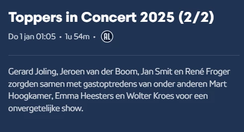 NPO 3 - Do 1 januari 01.05u. Toppers in Concert 2025