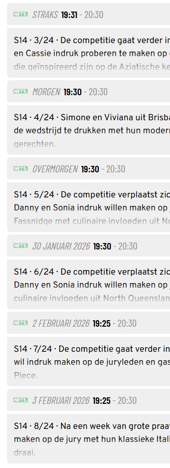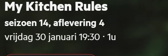 We zijn ermee bezig ​@matthijs peters! Het is helaas niet binnen een paar uurtjes opgelost. Hetzelfde geldt voor de BBC NL problematiek wat betreft onjuiste programmering en missende afleveringsnummers.