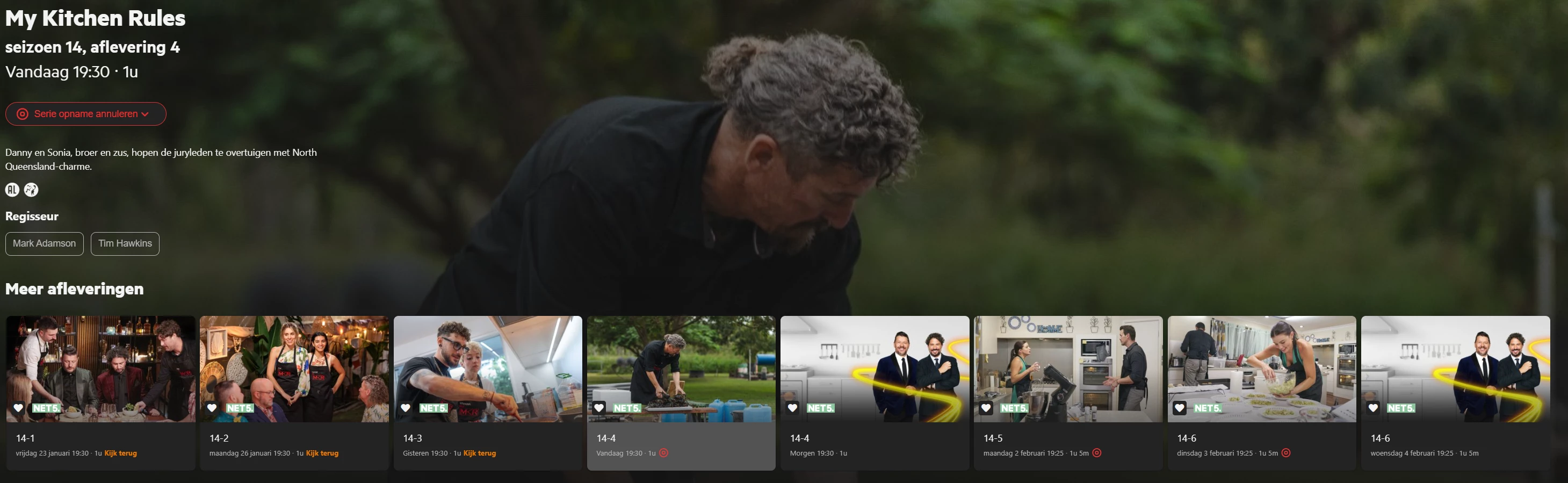 Dit is een klein hoofdpijndossiertje. Het blijkt namelijk dat Net5 sommige afleveringen opknipt in twee delen. Daardoor krijg je dus de opvolgende uitzendingen met hetzelfde afleveringsnummer. We zijn in gesprek met de leverancier om de data die aangeleverd wordt veranderingen in aan te laten brengen, zodat de volgorde logischer wordt. En ook zo dat serieopname mogelijk is/wordt. Voor nu is nog even het advies om missende afleveringen in de serieopname los op te nemen. Het is work in progress en er zijn helaas geen garanties te geven dat het opgelost gaat worden.