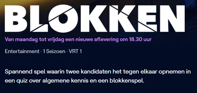 Dit vraagstuk is afgelopen December ook al eens voorbij gekomen. De informatie over dit programma voor wat betreft de seizoensindeling en bijhorende afleveringen is summier. Op de website van de VRT zelf staat dat het maar 1 seizoen is: