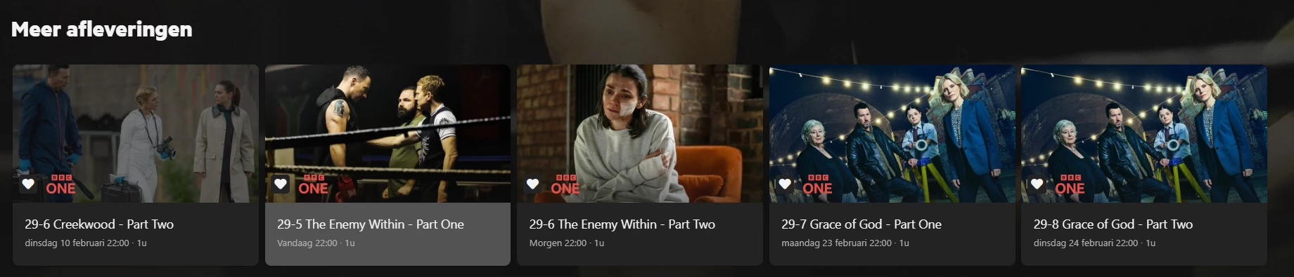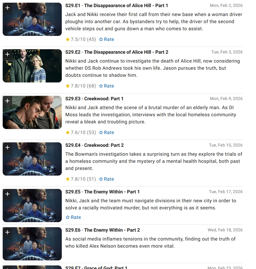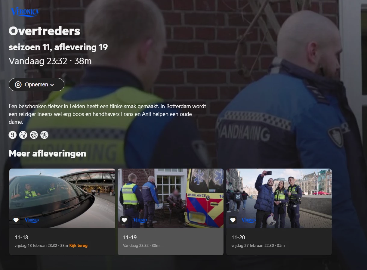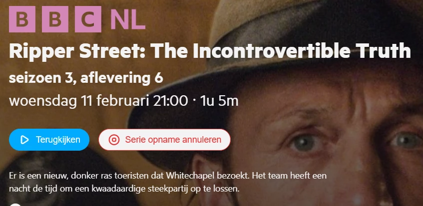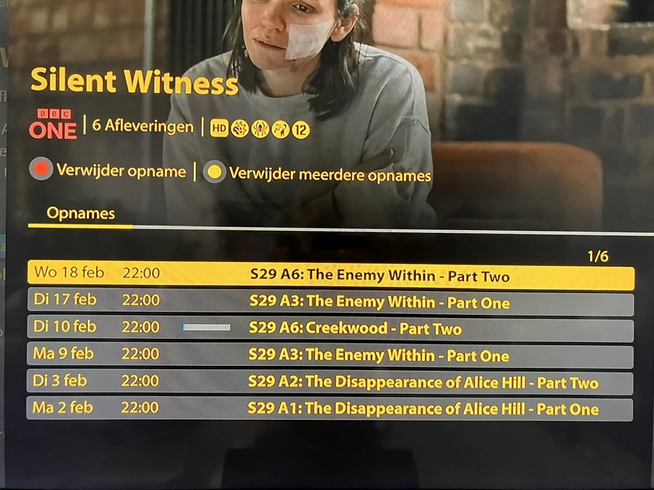 Serie opname werkt (bij mij) niet voor BBC 1 Silent Witness afl. S29 A5 di 17 feb 22:00 (vanavond) en S29 A6 wo 18 feb 22:00 (morgen). Ik kon deze afleveringen nog wel los inplannen in de mobiele app.