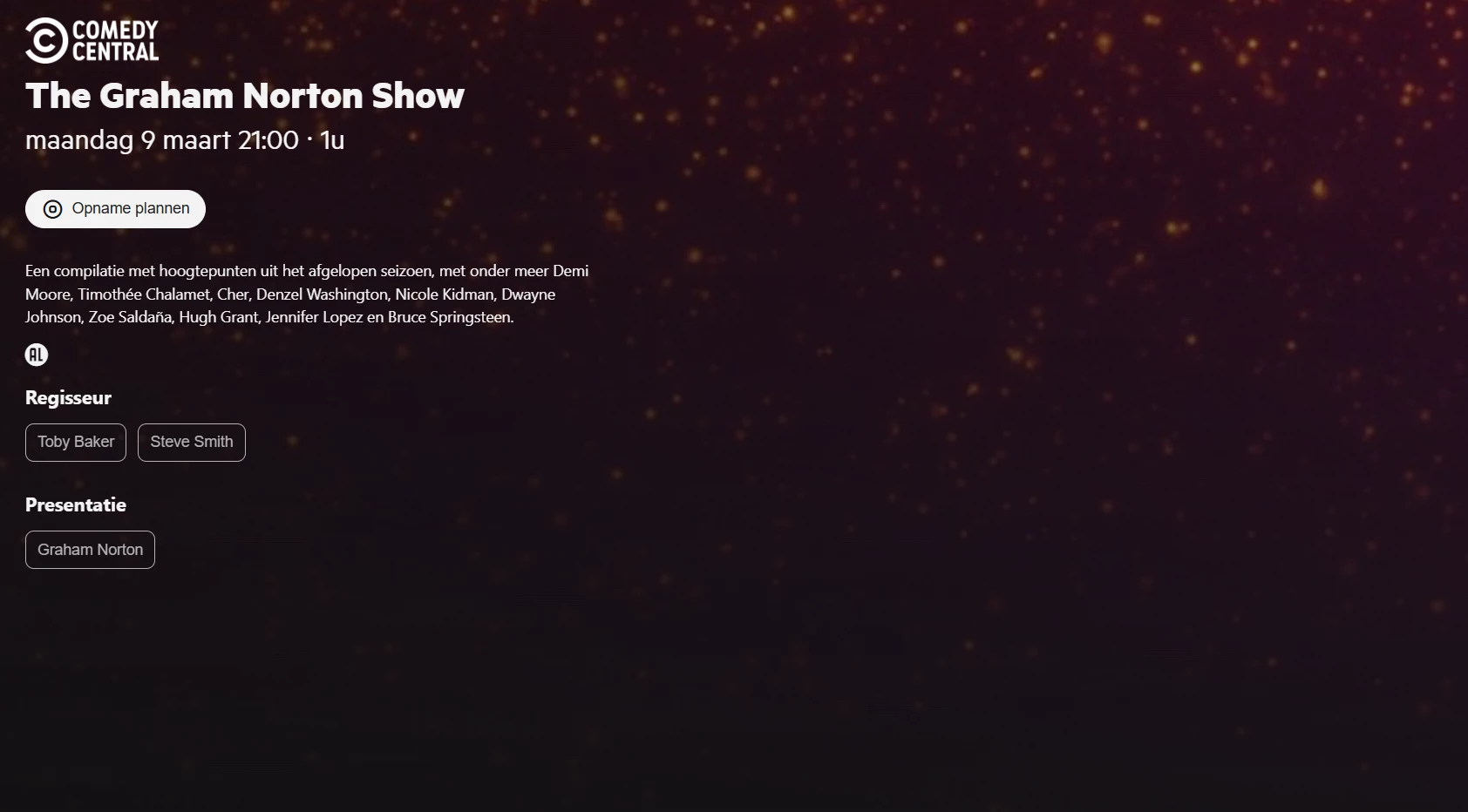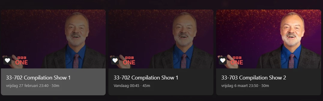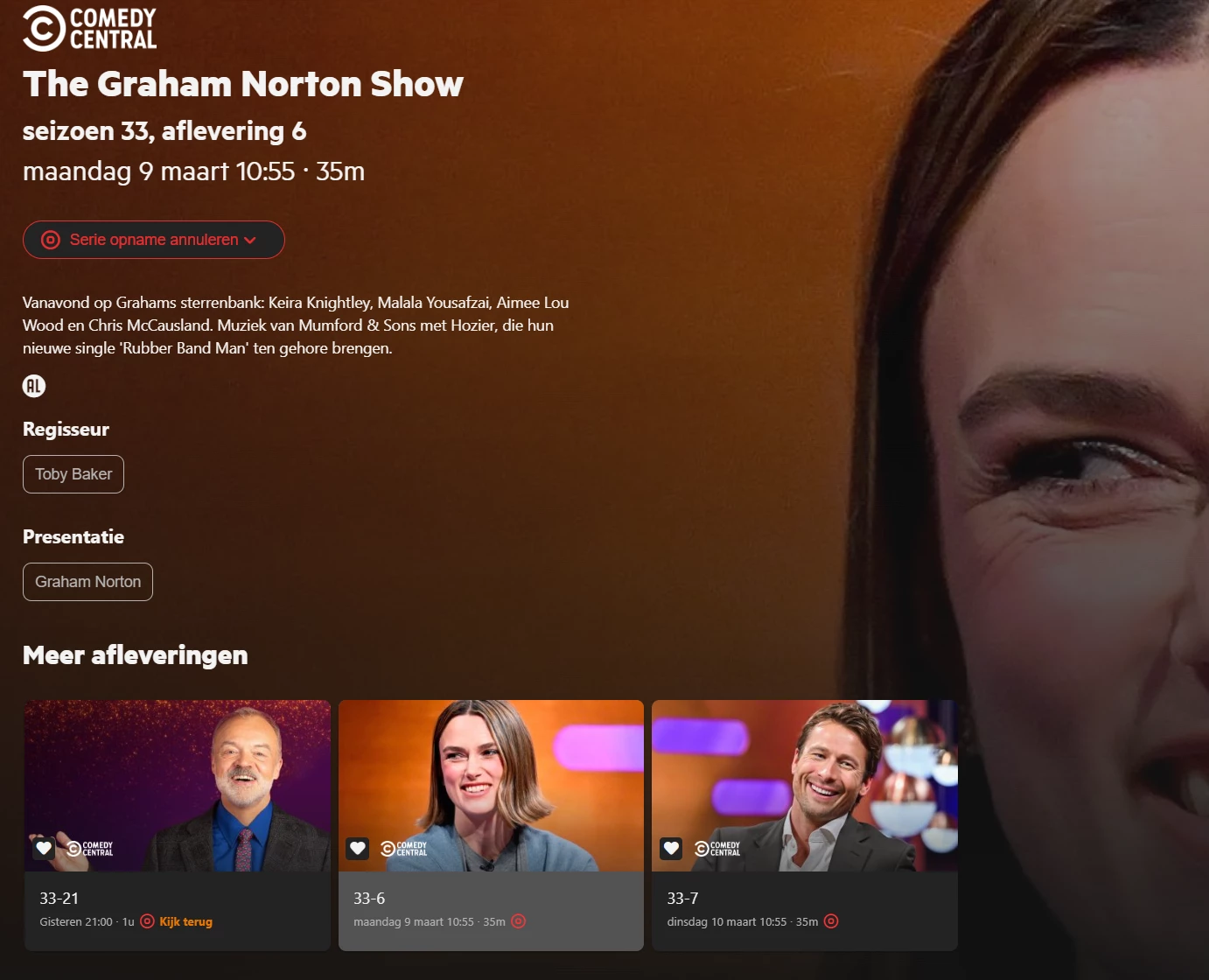 Voor de gids van 192TV zijn al de nodige wijzigingen doorgevoerd, maar nog niet alles staat er volledig correct in. We blijven hierover in gesprek met de gidsleverancier. Ook over ‘The Graham Norton Show’ blijven we in overleg, omdat wij het belangrijk vinden dat dit correct in de gids wordt weergegeven en er een structurele oplossing komt. Zijn we dus nog mee bezig.
