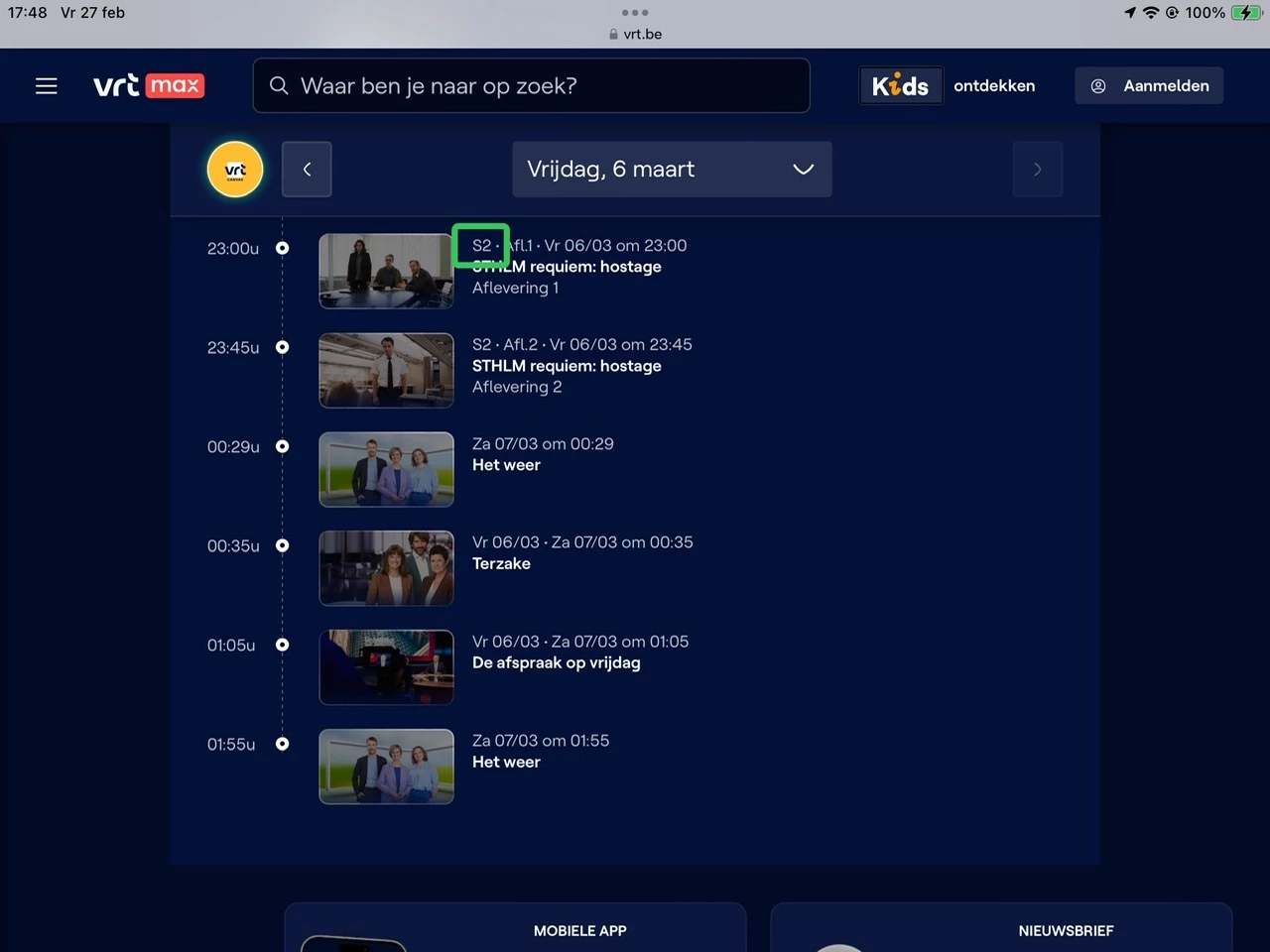 Volgens de gids van vrt.be zou dat S2 moeten zijn.