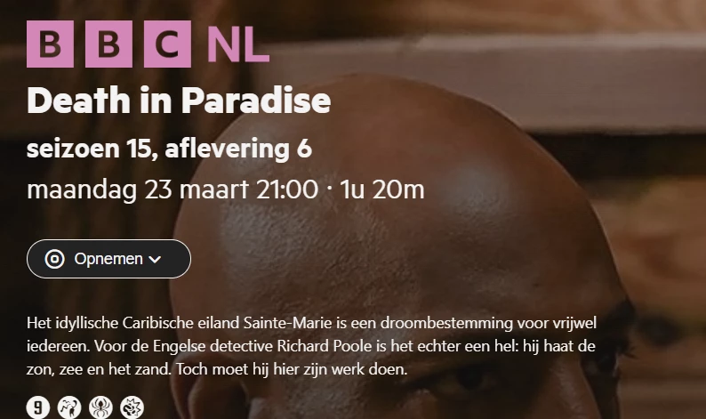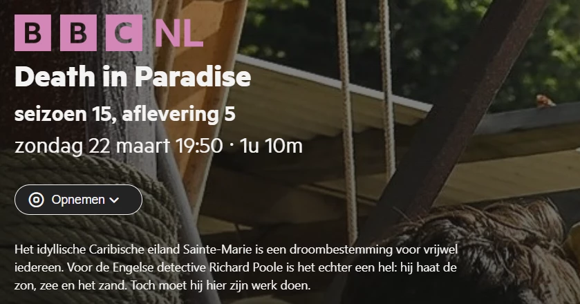• Zondag 15 maart, zowel de rechtstreekse uitzending van 15:45 als de herhaling om 23:15