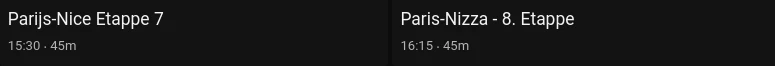 We hebben meerdere keren per week een goed gesprek met de gidsleverancier ​@frankkijktgraagtv 😉 En we hebben graag ook een foutenvrije gids en dat lukt ook grotendeels, maar er sluipen wel eens ongemerkt foutjes in. Zoals deze. Paris-Nizza kunnen we helaas niet meer aanpassen, want dat heeft weer nadelige consequenties voor de mensen die het hebben opgenomen. Maar wel bedankt voor het signaal!