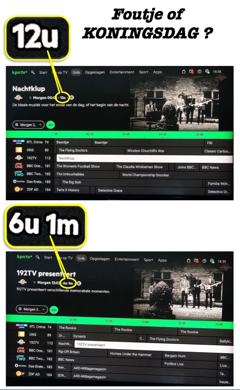 bedenk dus ook dat rtl8 op maandag ook goed fout stond met een programma van 4 uur lang wat niet kan. Dus ik denk dat kpn zijn epg leverancier op gebrekkige data moet aanspreken en ook naar zijn eigen verwerking moet gaan kijken want nu word te veel klakkeloos overgenomen