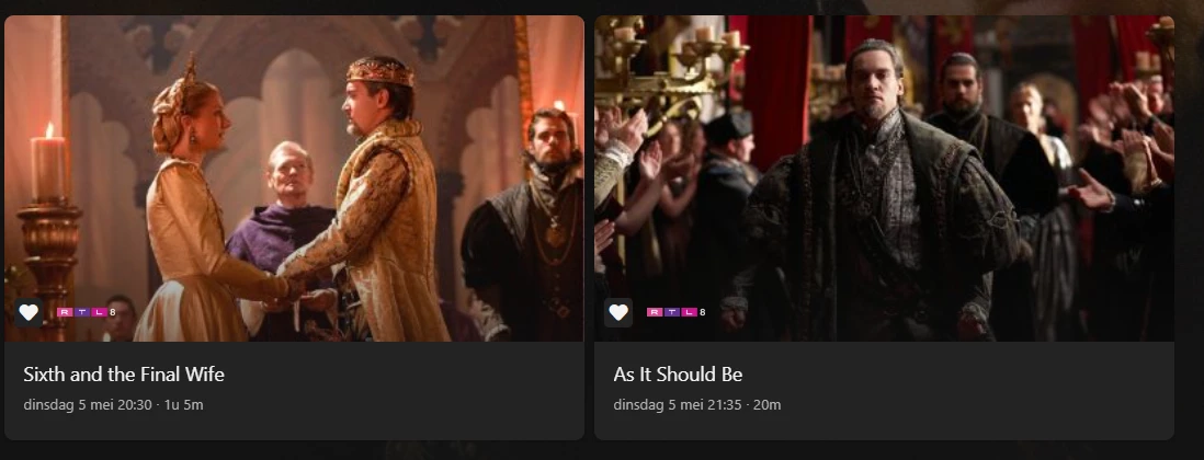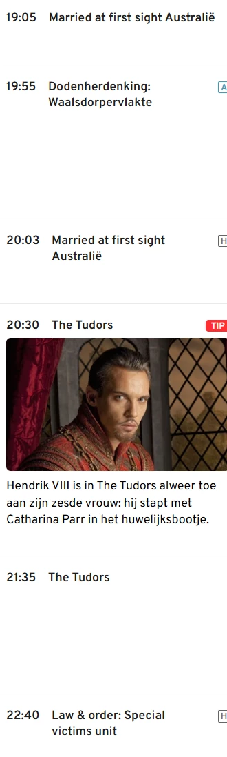 dodenherdenkling en the tudors staan nu op dinsdag 5 mei bij rtl8