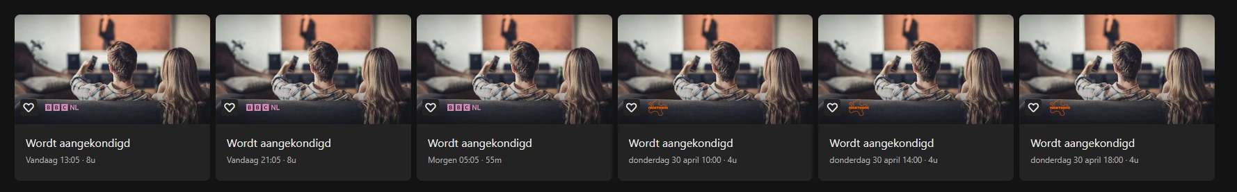 Aan de ‘Wordt aangekondigd’s op BBC NL kunnen we helaas niets meer veranderen. We merken ze niet allemaal op, dus een heads up een paar dagen van te voren wordt gewaardeerd. En dan heb ik vooral over zenders zoals BBC NL en andere veel bekeken kanalen. Achteraf kunnen we er niet zoveel meer mee.