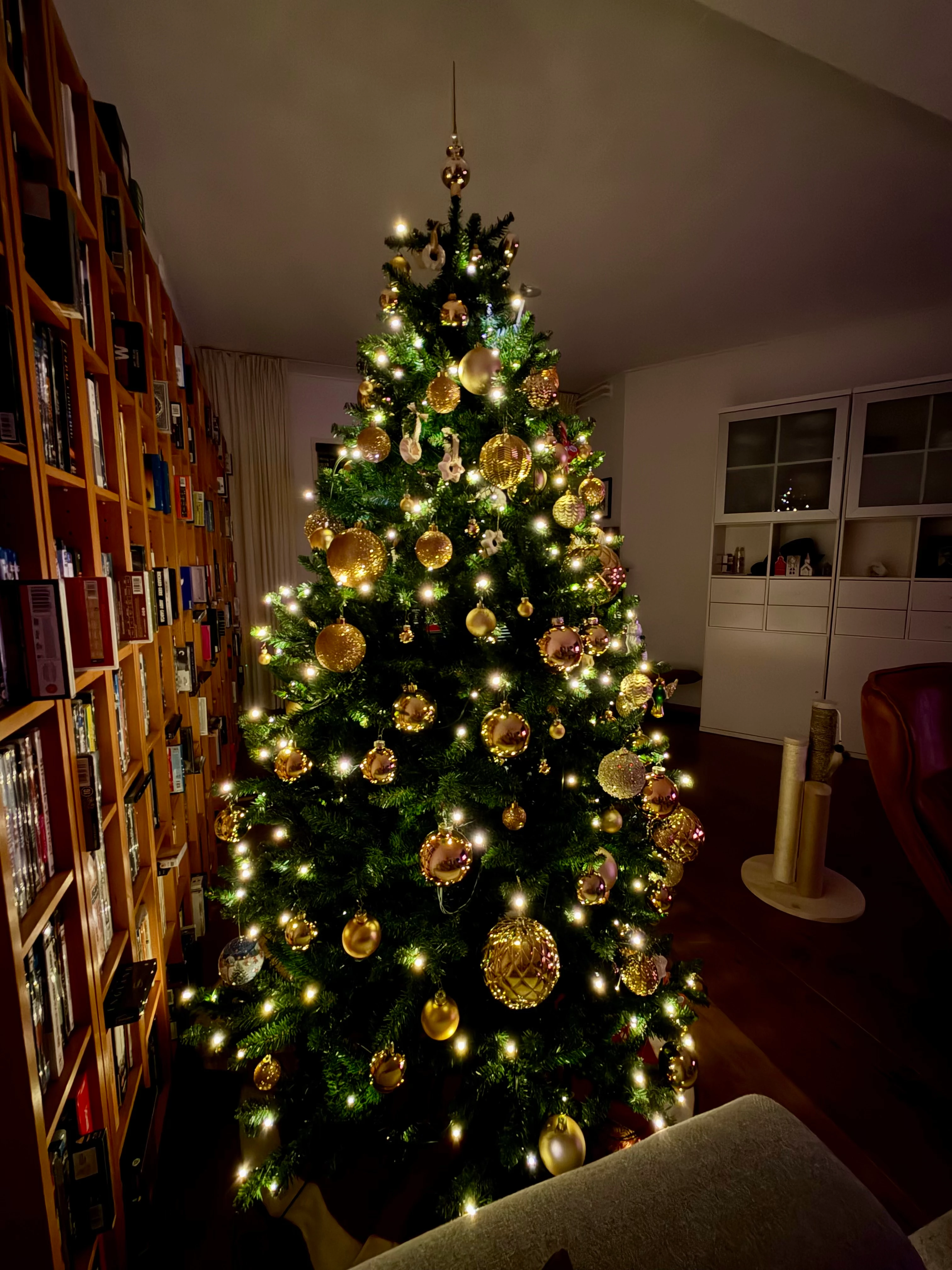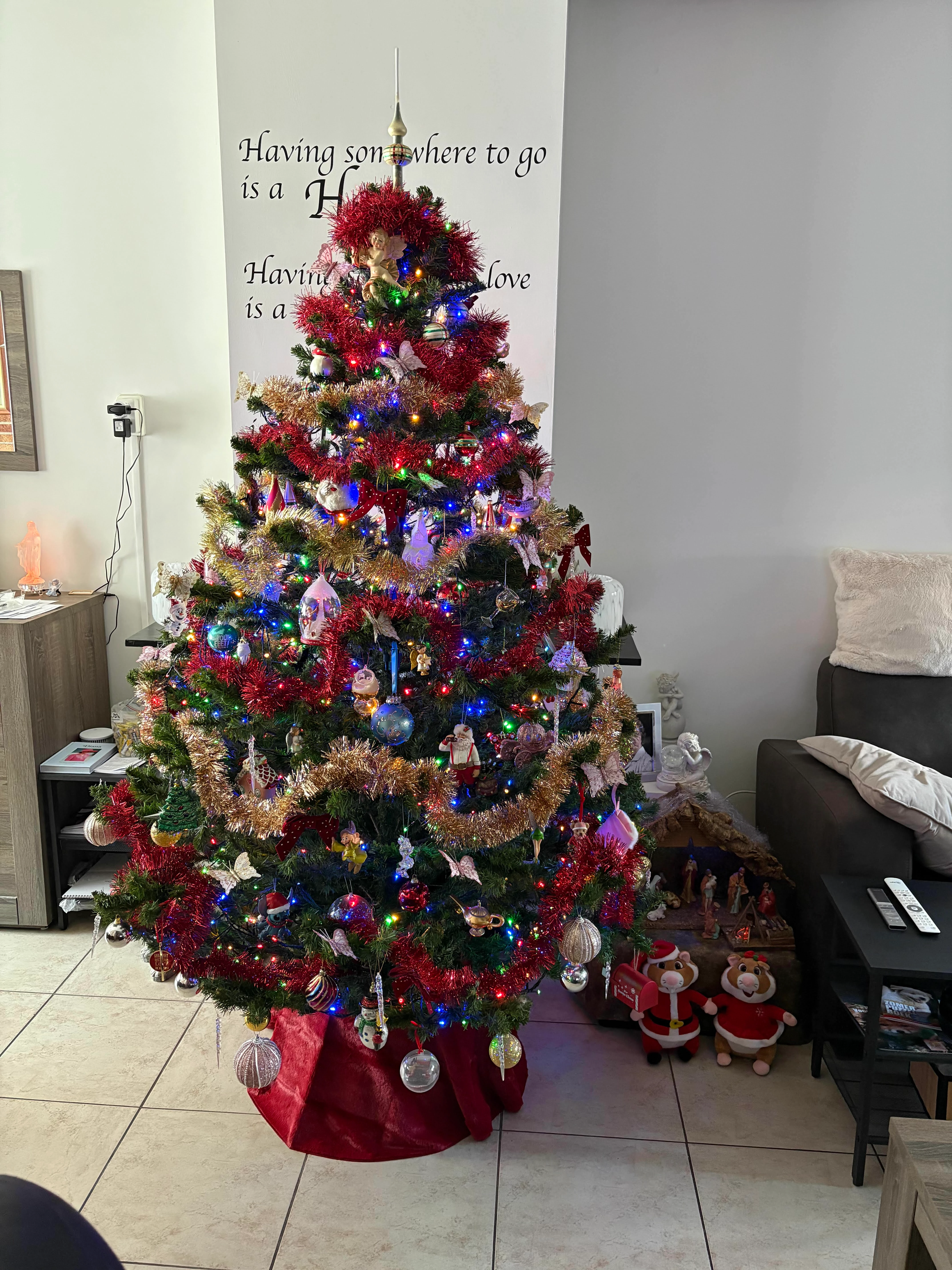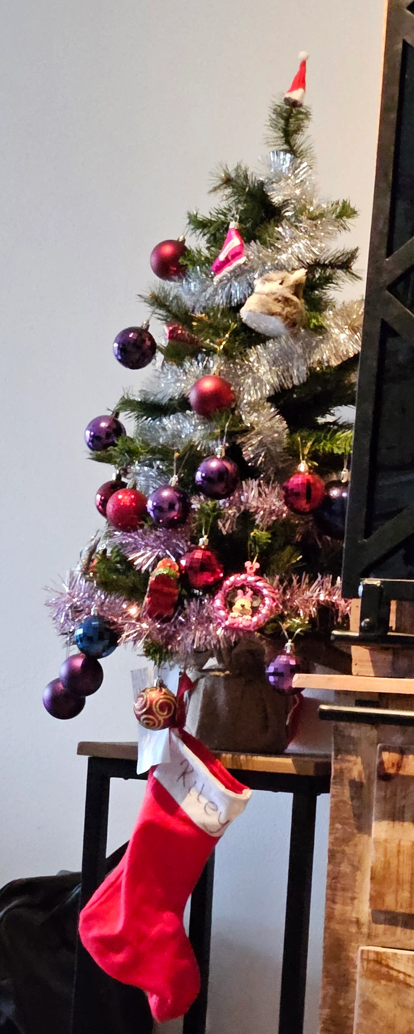geen kerstboom dit jaar ivm een baby op komst en de plek van de kerstboom is ingenomen door de box. Maar we hebben wel een kerstballen rek dit jaar waar nog zeker een plekje is voor Louis!!!! Hopelijk blijft hij van de worst af🫣🫣