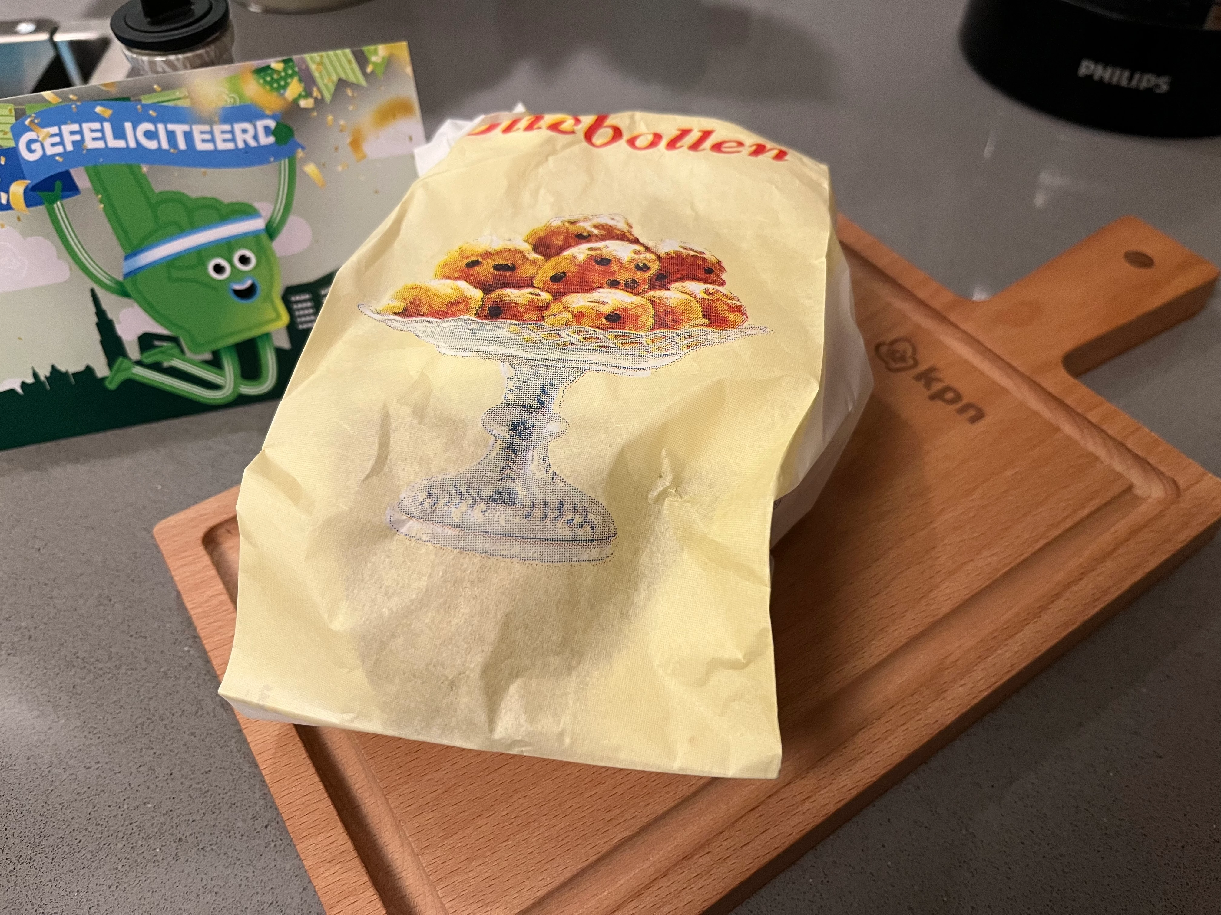 Ik heb de KPN borrelplank vanmiddag overhandig gekregen van de vaste PostNL bezorger bij mij in de woonwijk, dus kan hem tijdens Oud & Nieuw gaan gebruiken.