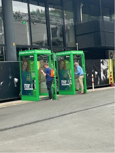 • Bezoekers kunnen in omgebouwde telefooncellen uit het straatbeeld van vroeger hun smartphone gratis opladen.